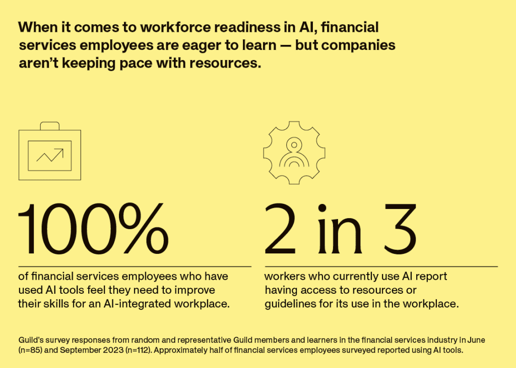 Leaders of financial services institutions see the potential for AI to impact their entire workforce, but companies are lagging in providing AI training for their workforces.