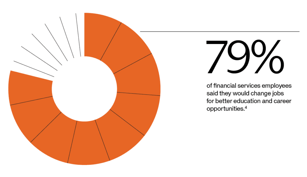 AI is poised to impact the financial services industry across job levels — from executives to the frontline — as well as business models. Talent leaders can help their entire workforce gain critical skills for the future by ensuring access to job-relevant AI skills.