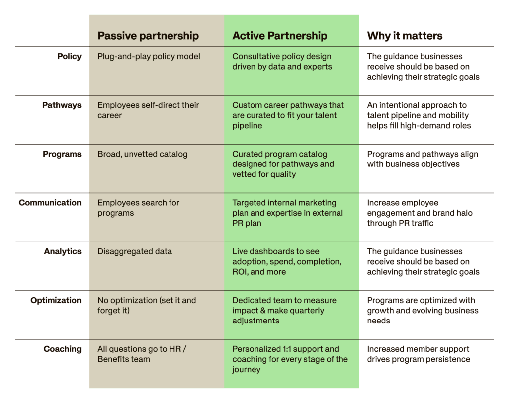 See the difference an active — vs passive — partnership can have on employee experience, policy design, internal mobility, and strategic objectives.